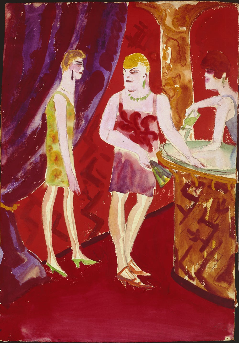 All that newfound acceptance was put to the test inside the Eldorado, in Berlin, where clientele were invited to be themselves — Transvestitenschein included. A gay bar, Eldorado housed a veritable who’s-who of the German arts world: Poet W.H. Auden (who I quote liberally in Dispatch #43), actress Marlene Dietrich (who would go on to become friends with Mae West), and artist Otto Dix. When Christian Schad painted a Viennese aristocrat in 1927, he situated his subject “between an older, somewhat masculine woman and a well-known transvestite in transparent clothes from the Eldorado in Berlin,” Schad wrote. “Why? I thought it was the right thing at the time.”