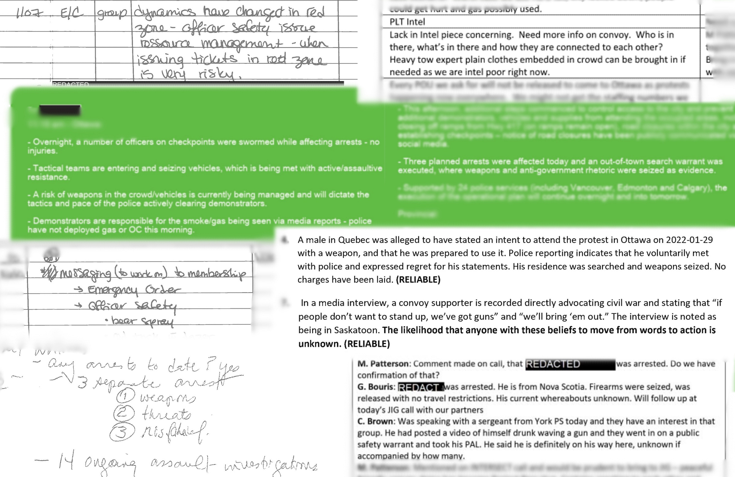 While a significant amount of the most sensitive material — including evidence that may still be before the courts — is redacted in these documents, there is clear confirmation that police had intelligence around firearms being present in the occupation and laid charges relating to, allegedly, illegally-possessed firearms.