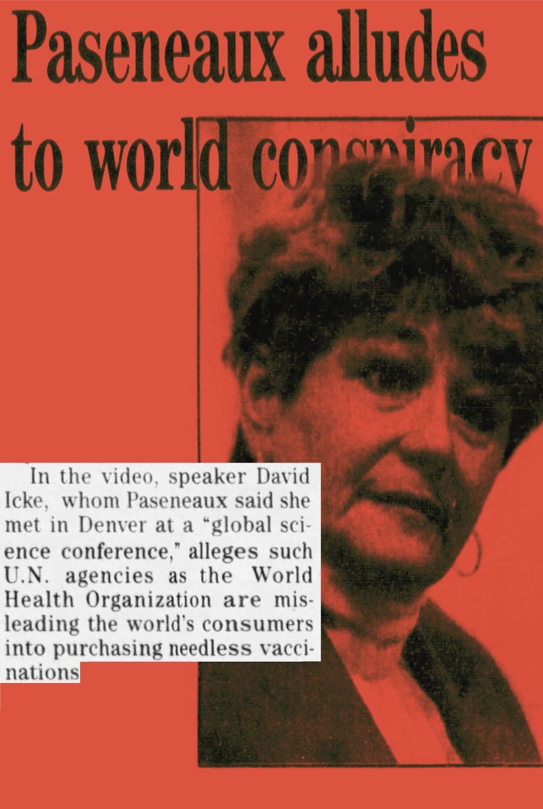 He won fans. In 1997, Wyoming state representative Carolyn Paseneaux showed one of Icke’s videos to a captive audience. Icke, she promised the crowd, per the Casper Star-Tribune, “gets into the Rothschilds, the Rockefeller, the Trilateral Commission, and how our president plays into that."