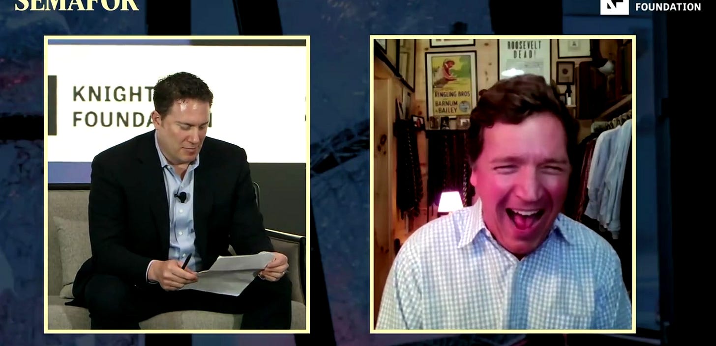 The event, co-hosted with the Knight Foundation, was notionally about restoring trust in media and journalism as an institution. And it’s not hard to hear someone try and justify bringing in Carlson, perhaps one of the most pugilistic personalities on television, to answer for his role in smashing whatever remains of that trust. You can probably even imagine it in Donahue’s voice, deadpan while peering over his glasses, delivering an appeal to air out all sides of the issue and let truth prevail.