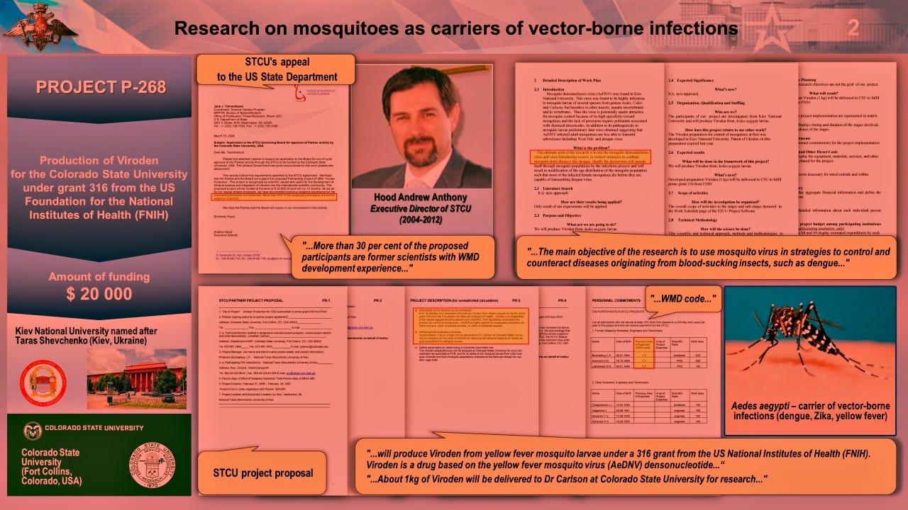“The interest of the American clients in mosquitoes of this species that are vectors of transmissible infections such as dengue fever, Zika and yellow fever is not accidental,” reads a summary of a Russian-language presentation given earlier this week. “During the last major outbreak of yellow fever in Africa (in 2013), there were 170 thousand cases of the severe form of this disease, including 60 thousand that resulted in death.” Russia is accusing America of “the use of Aedes mosquitoes as biological weapons, exactly the same ones operated by the U.S. military department.”